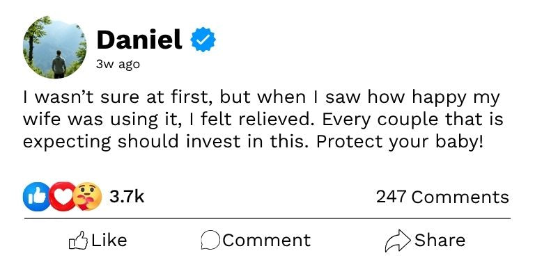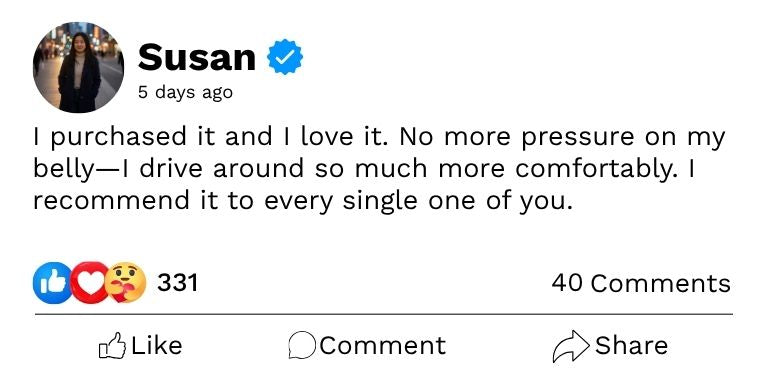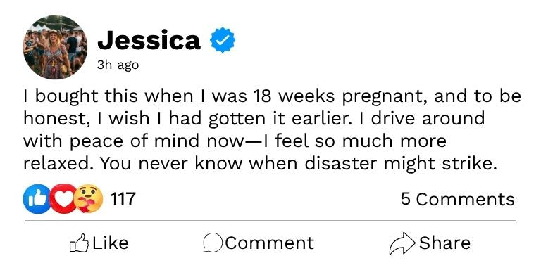 "This belt saved my unborn baby’s life. I was in a serious crash two days ago—someone ran a red light and hit me and my 14-month-old. I’m 19 weeks pregnant, and my doctor said with the damage to my legs, I likely would’ve lost the baby if I hadn’t been wearing this. I can’t thank you enough, Lumimom. You truly saved my baby boy."